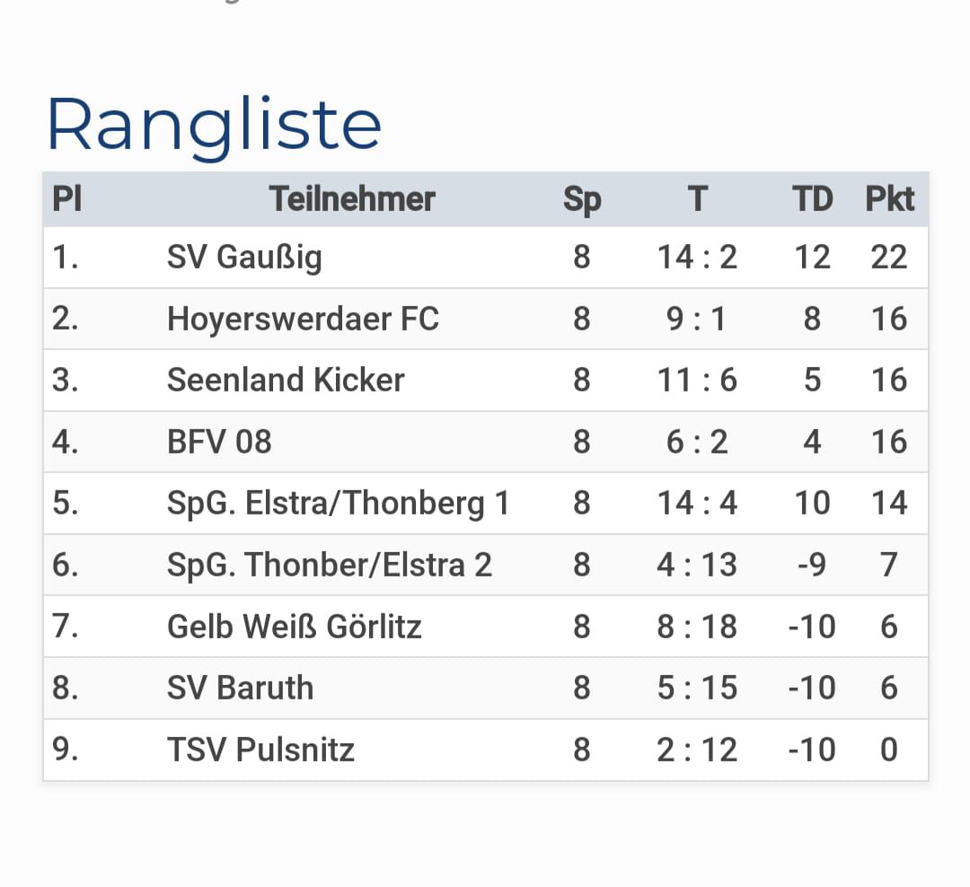 Mit dem letzten Spiel der Männermannschaft endet die Saison für den SV Gaußig mit folgenden Platzierungen: